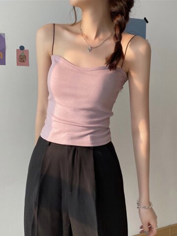 앤지아 크롭 탱크탑 이너 슬림핏 탑 끈나시