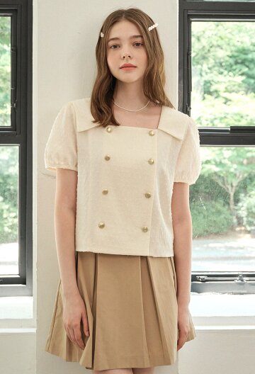 로터스 더블 버튼 세일러 카라 블라우스