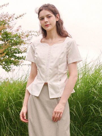 벨플라워 하트넥 슬릿 블라우스