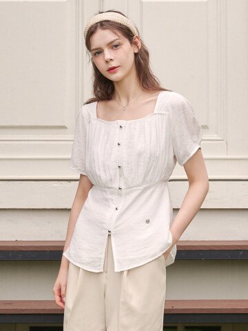 보이지 셔링 스트랩 블라우스