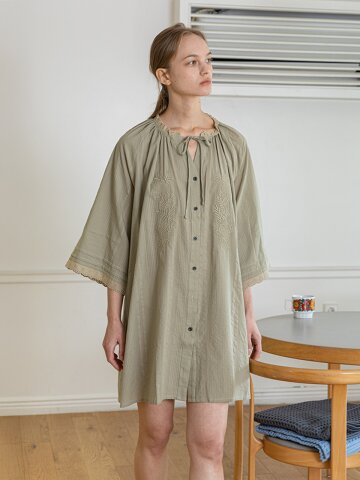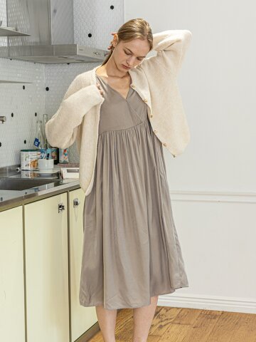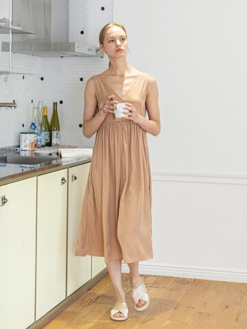 MJ_V-neck loose nightdress_KHAKI BEIGE