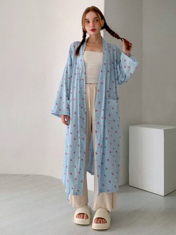체리 블루 체크 로브 가운