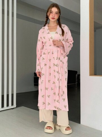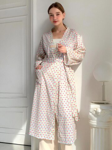 로미 하트 체크 로브 가운