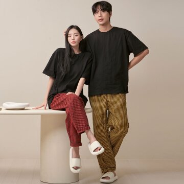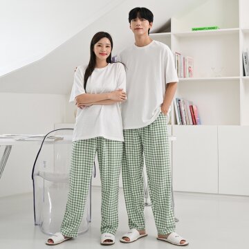 청춘 체크 남여공용 커플잠옷 파자마바지