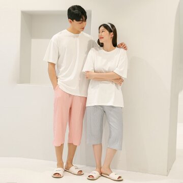 지지미 슬러시 7부 남여 커플 파자마바지