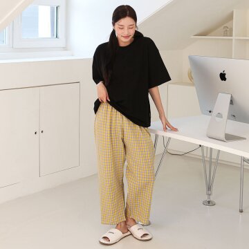 무무 지지미 체크 9부 긴바지 홈웨어 파자마바지