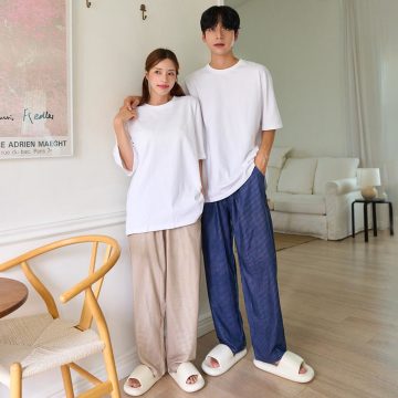 카페인 바지 남녀공용 커플 스트라이프 홈웨어 파자마 4colors