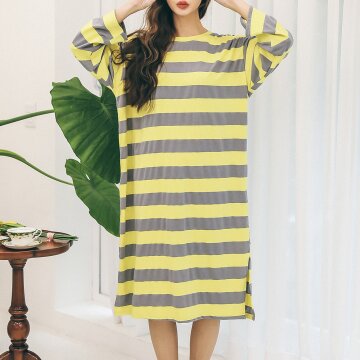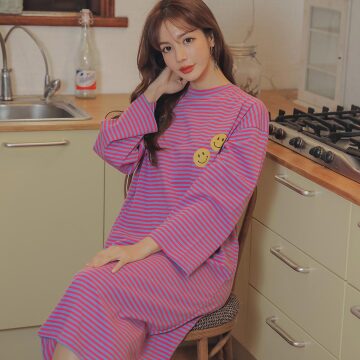 국산 새콤달콤 단가라 긴팔 원피스 박시 홈웨어 잠옷