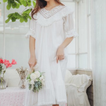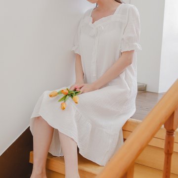 미시 긴소매 순면 레이스 원피스 파자마 임산부 잠옷 홈웨어