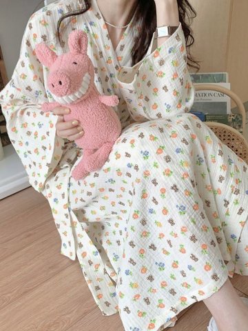 가네 여성 샤워 가운 요루면 수유 임산부 로브 파자마 홈웨어
