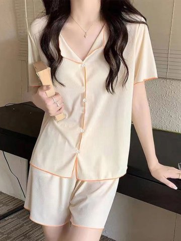 리나 여름잠옷 반팔 반바지 아이스실크 홈웨어 세트