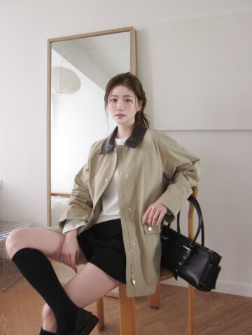 벨티드 플랩 숏 트렌치 코트