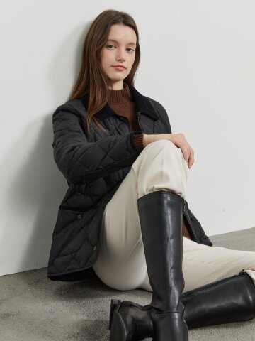 퀼팅 코듀로이 칼라 덕 다운 패딩점퍼