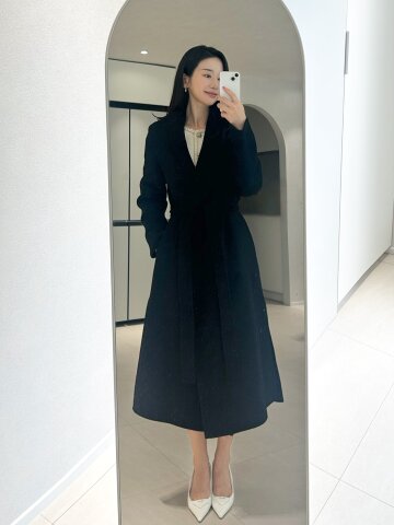 캐시미어 숄 칼라 벨티드 핸드메이드 코트