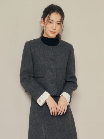 FLIP-DECORATED R MINI WOOL JACKET_CHARCOAL