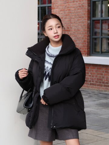 폭스퍼 벨티드 하프 구스다운 점퍼