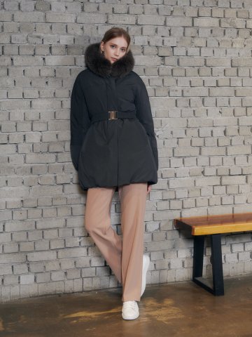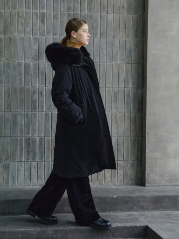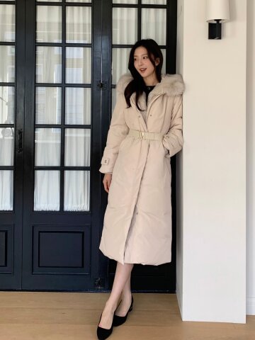 구스다운 폭스퍼 벨티드 롱 점퍼
