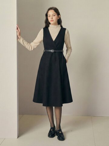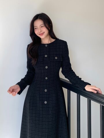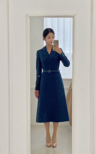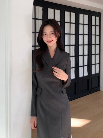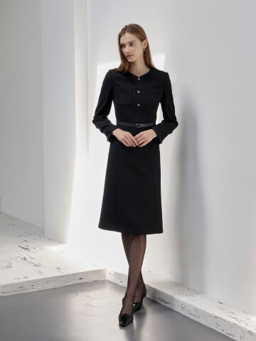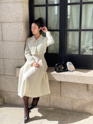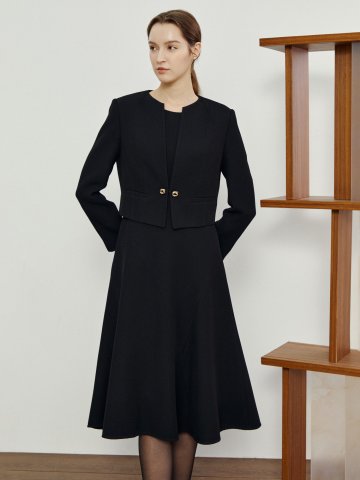 울 블렌드 스퀘어넥 머메이드 원피스+재킷