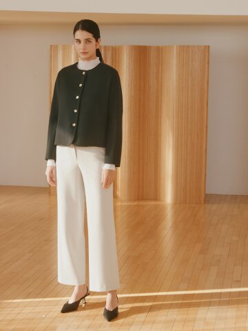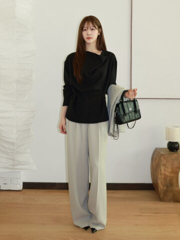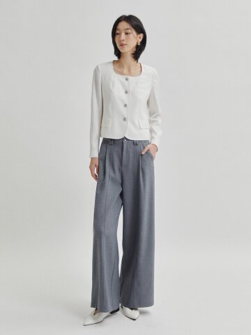 울 블렌드 원 턱 와이드핏 슬랙스 팬츠