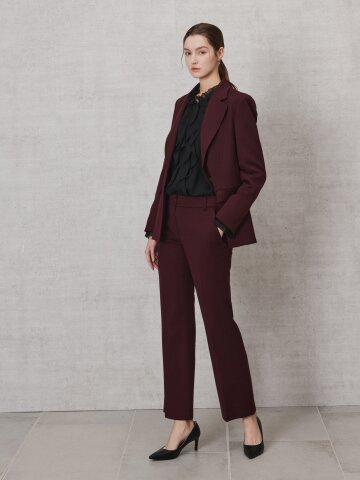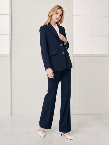 울 히든 버튼 슬림핏 팬츠