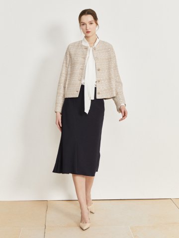 텍스쳐 트위드 H라인 스커트
