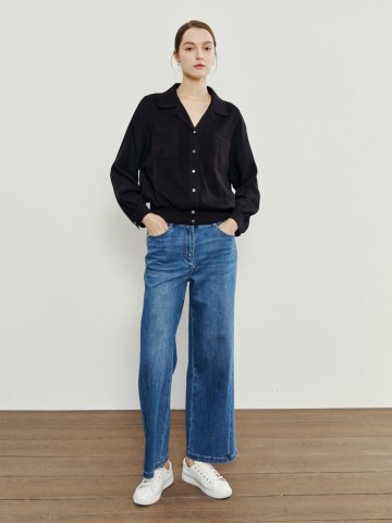 소프트 테이퍼 와이드 데님 팬츠