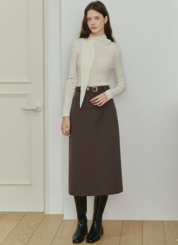 벨티드 골지 H라인 스커트
