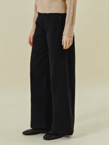 코튼 백 밴딩 세미 와이드 팬츠
