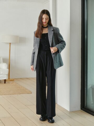 투 턱 기모 와이드 슬랙스 팬츠
