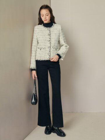 잔조직 슬림 부츠컷 팬츠