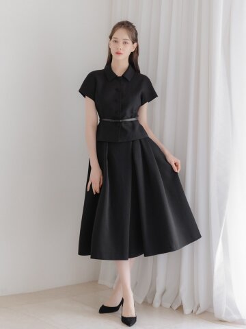투 턱 A라인 스커트