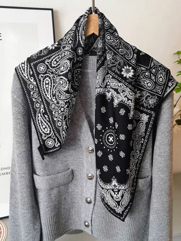 베르크 페이즐리 실크 블랙 사각 간절기 스카프