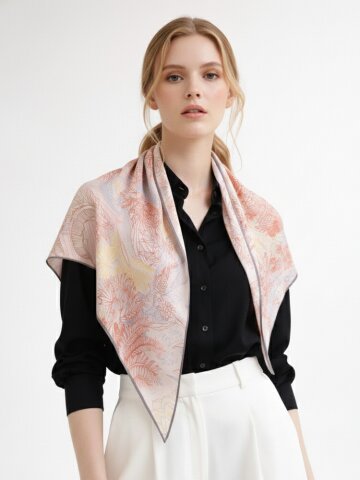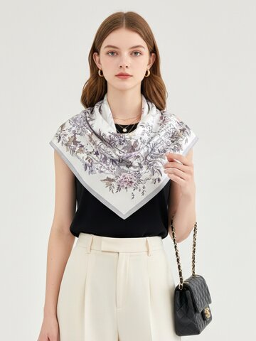 프랑스 화려한 코스모스 꽃무늬 숏스카프