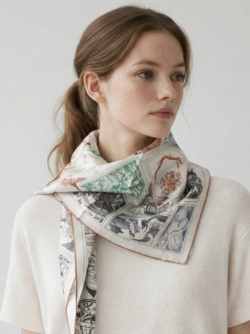 누넬 여성 사각 스카프 유니크 감성 패턴 봄 가을 사계절 머플러 S93