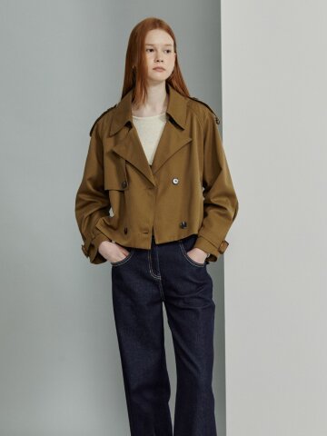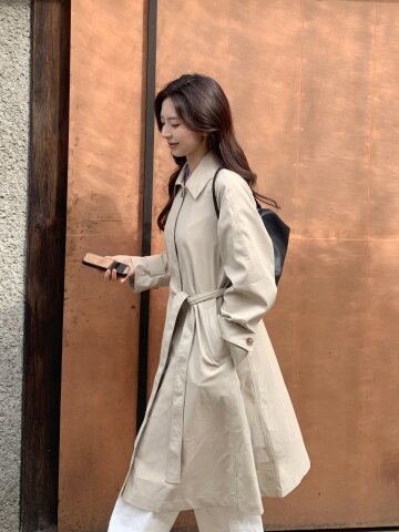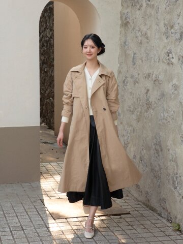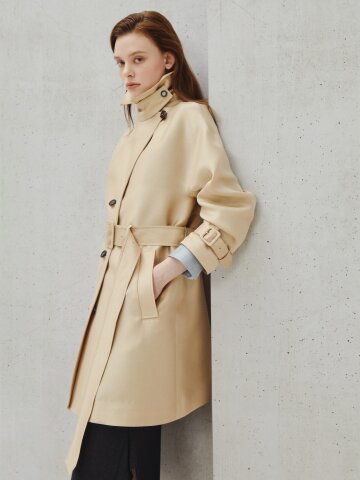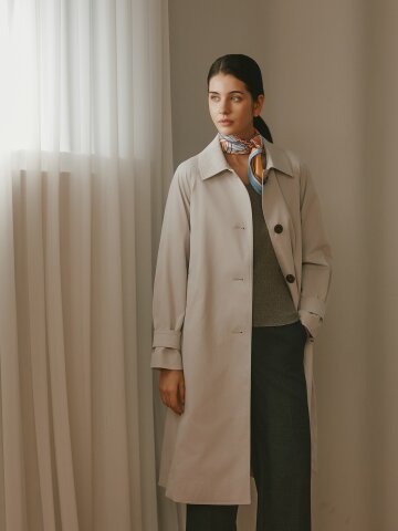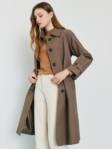 코튼 블렌드 래글런 싱글 트렌치 코트