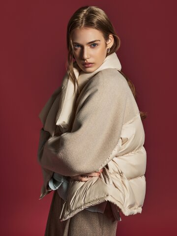숄 칼라 벨티드 구스다운 점퍼