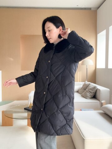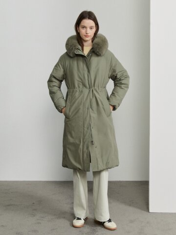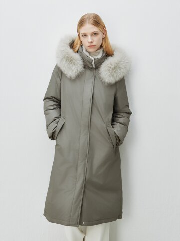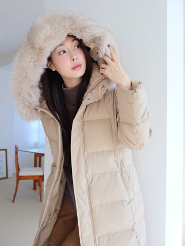 구스다운 밍크 트리밍 롱 점퍼
