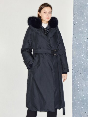 폭스퍼 벨티드 구스다운 롱 점퍼