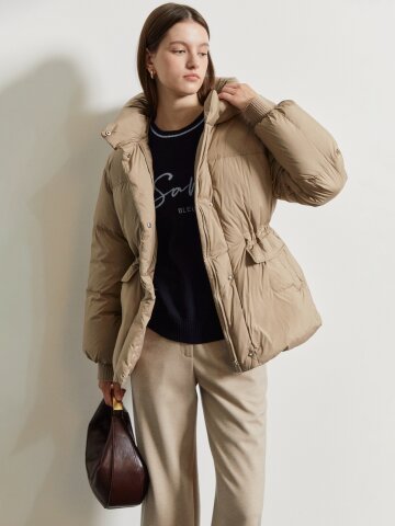 구스다운 하이넥 벨티드 점퍼