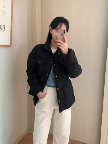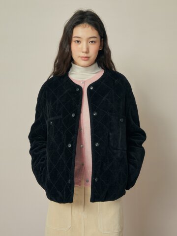 덕 다운 벨벳 텍스처 칼라 퀼팅 점퍼
