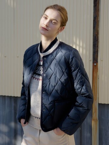 덕 다운 퀼팅 라운드넥 재킷