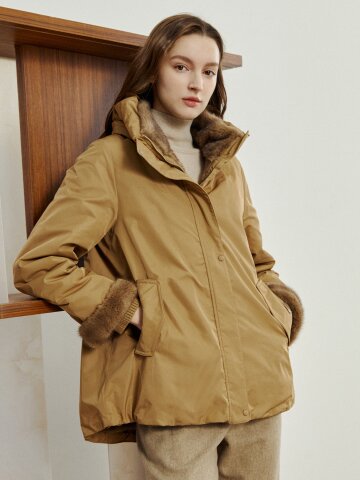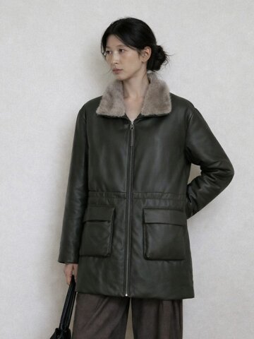구스다운 밍크 칼라 트렌치 점퍼