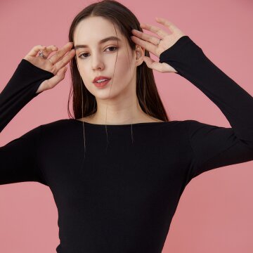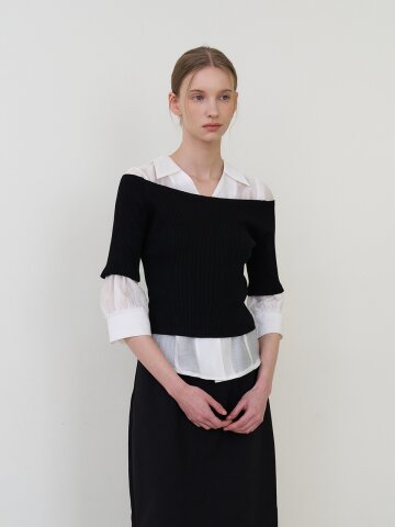 보트넥 레이어드 티셔츠 블랙 [T61]
