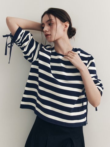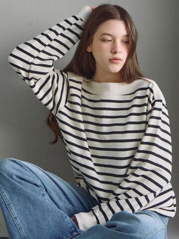 스트라이프 보트넥 긴팔 티셔츠 2colors