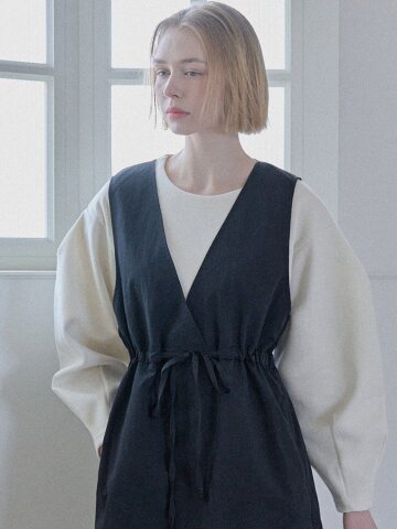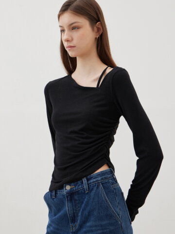 언발란스 스트랩스 벌룬 긴팔티셔츠 - 블랙