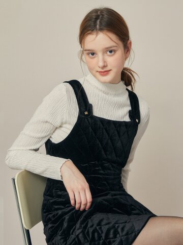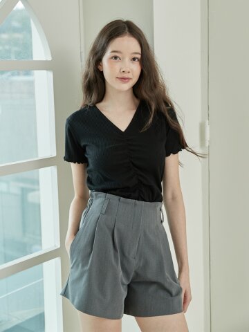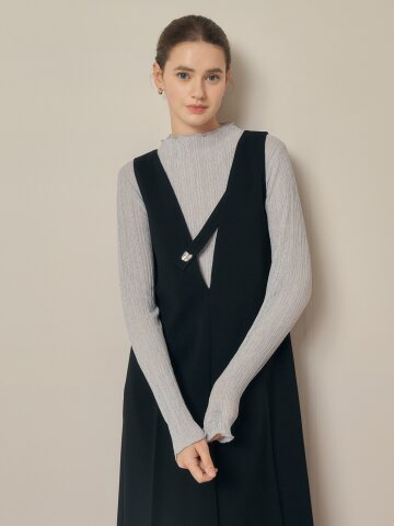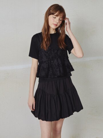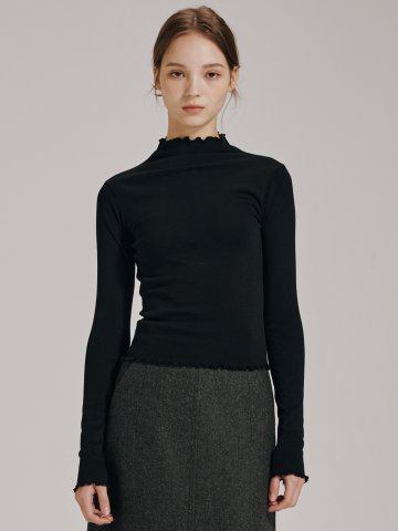 프릴 하프넥 티셔츠 - 블랙 / Frill Half-Neck T-Shirt - Black