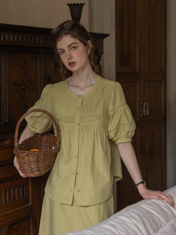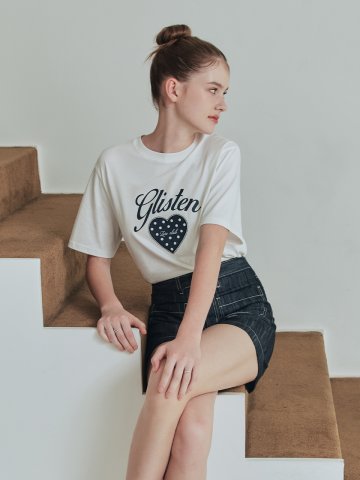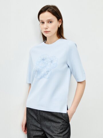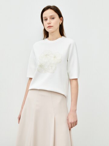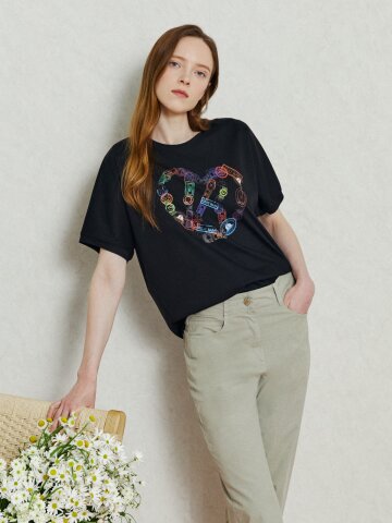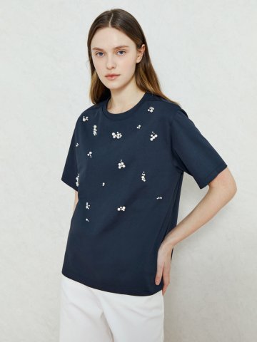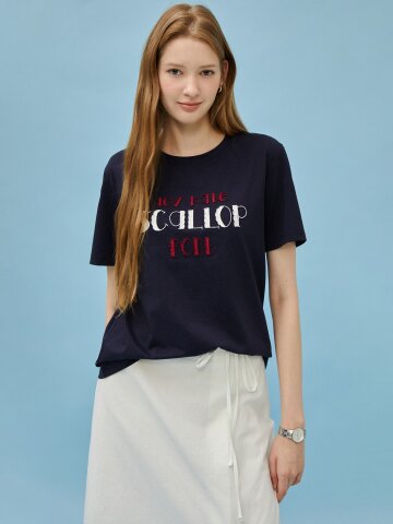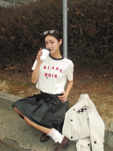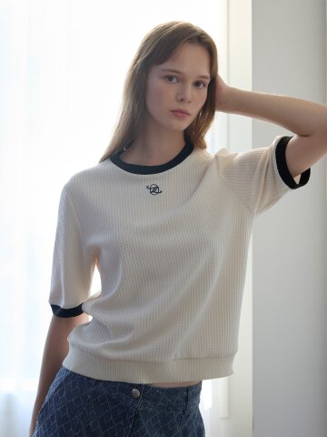 하프 슬리브 와플 텍스처 배색 티셔츠
