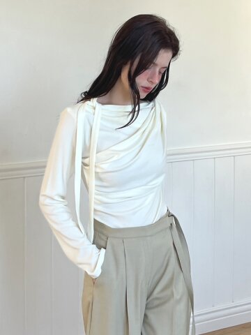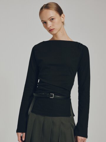 보트넥 드레이프 티셔츠 - 블랙 / Boatneck Drape T-shirts - Black
