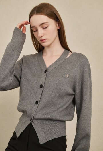 V-Neck Cut Out Cardigan - M. Gray