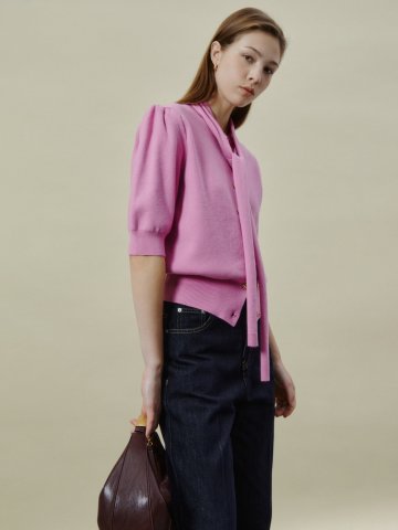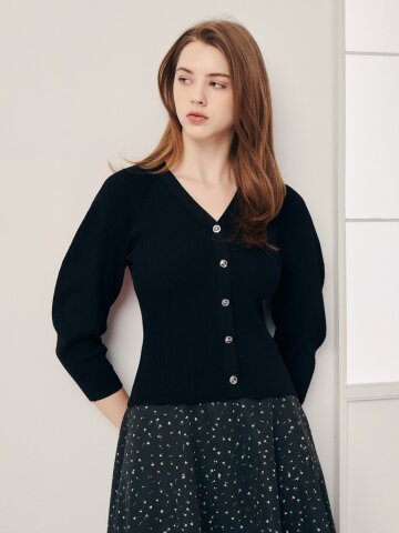 스카프 버튼 벌룬 가디건